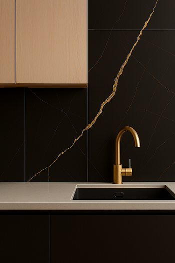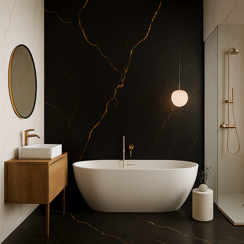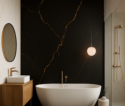 سرامیک طرح الگانس با ابعاد 60×120 و لعاب براق، ترکیبی چشمگیر از سفید و مشکی با رگههای طلایی ظریف ارائه میدهد که جلوهای لوکس و مدرن به فضای شما میبخشد. تضاد رنگها و خطوط طلایی، حس شکوه و زیبایی را به محیط منتقل میکند و هر فضایی را خاص جلوه میدهد.